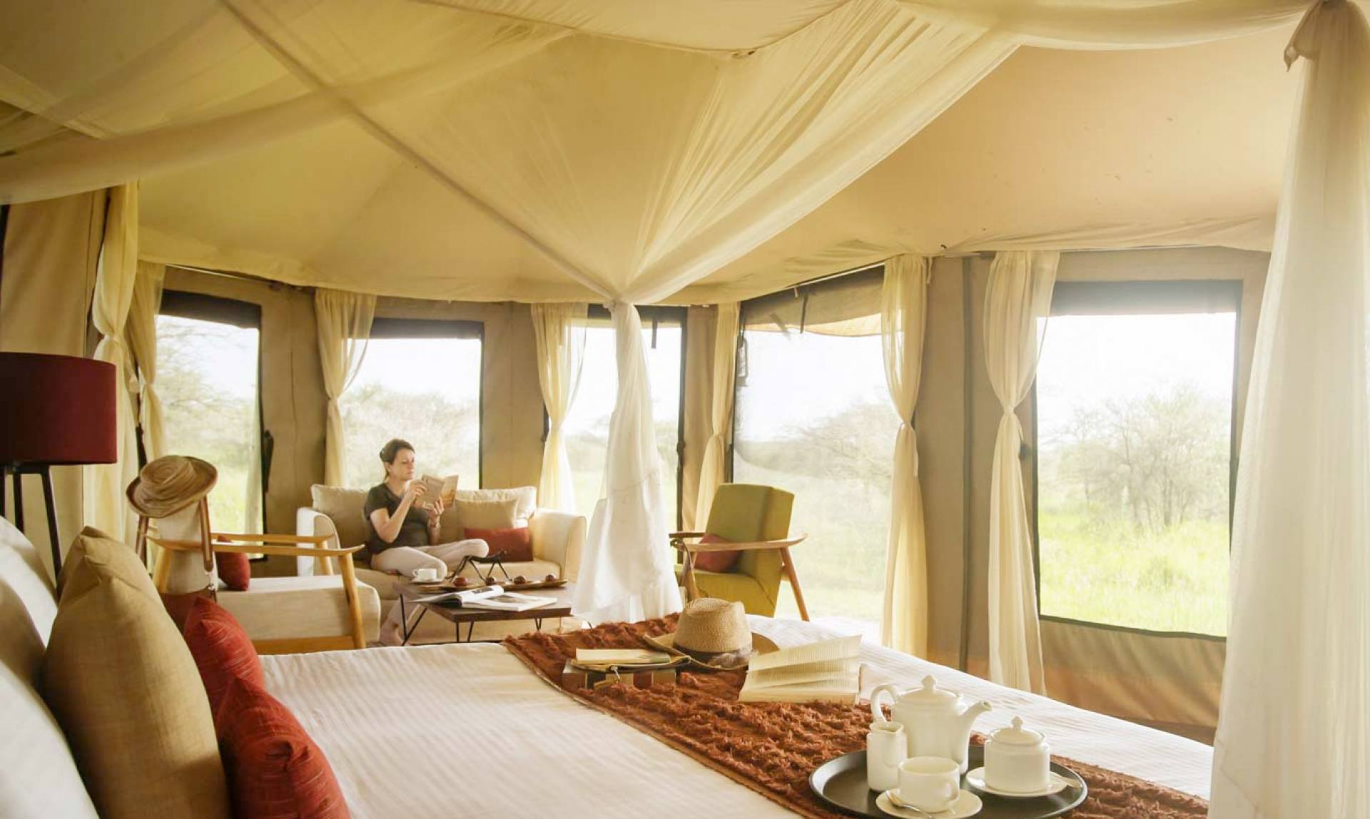 Olmara Camp est un camp de tentes unique situé dans les plaines orientales de la région reculée de Soit le Motonyi du Serengeti. La région regorge de guépards, de lions, de léopards, de servals et d’autres animaux sauvages, offrant aux visiteurs un spectacle inégalé. Le camp propose huit tentes au confort élégant conçues pour se fondre dans l’environnement, équipées d’un lit king-size, d’un bureau, de tapis moelleux posés sur des sols en teck et d’une salle de bain privée. Le camp propose également trois tentes à toit ouvert pour apprécier le magnifique ciel étoilé africain et le camping « Fly » pour vivre une expérience nocturne unique dans la savane africaine.