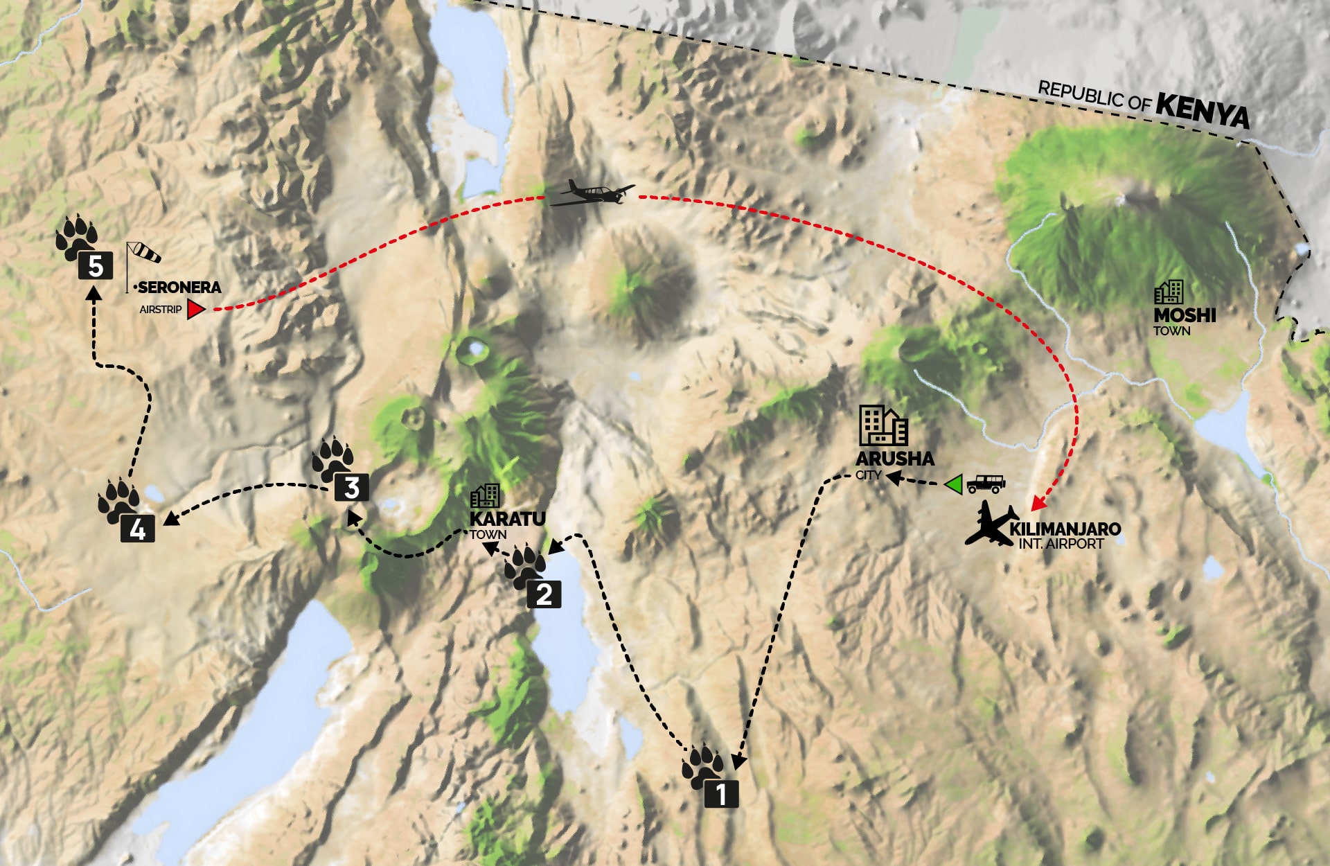 Dopo la colazione, trasferimento all’Airstrip e volo di linea per l’aeroporto del Kilimangiaro. (Tempo indicativo volo: 1 h 30 min)