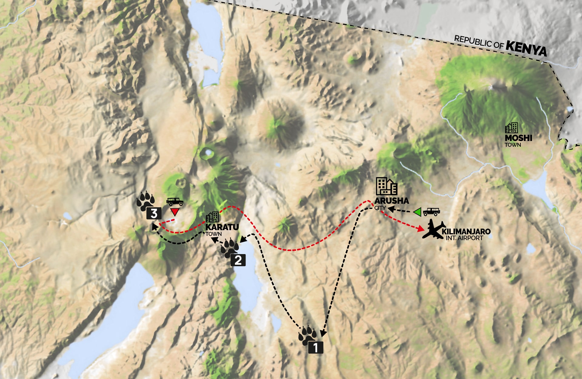 L’itinerario ideale pensato dal nostro tour operator per safari in Tanzania per chi ha solo quattro giorni e desidera visitare tre dei parchi nazionali più famosi della Tanzania.