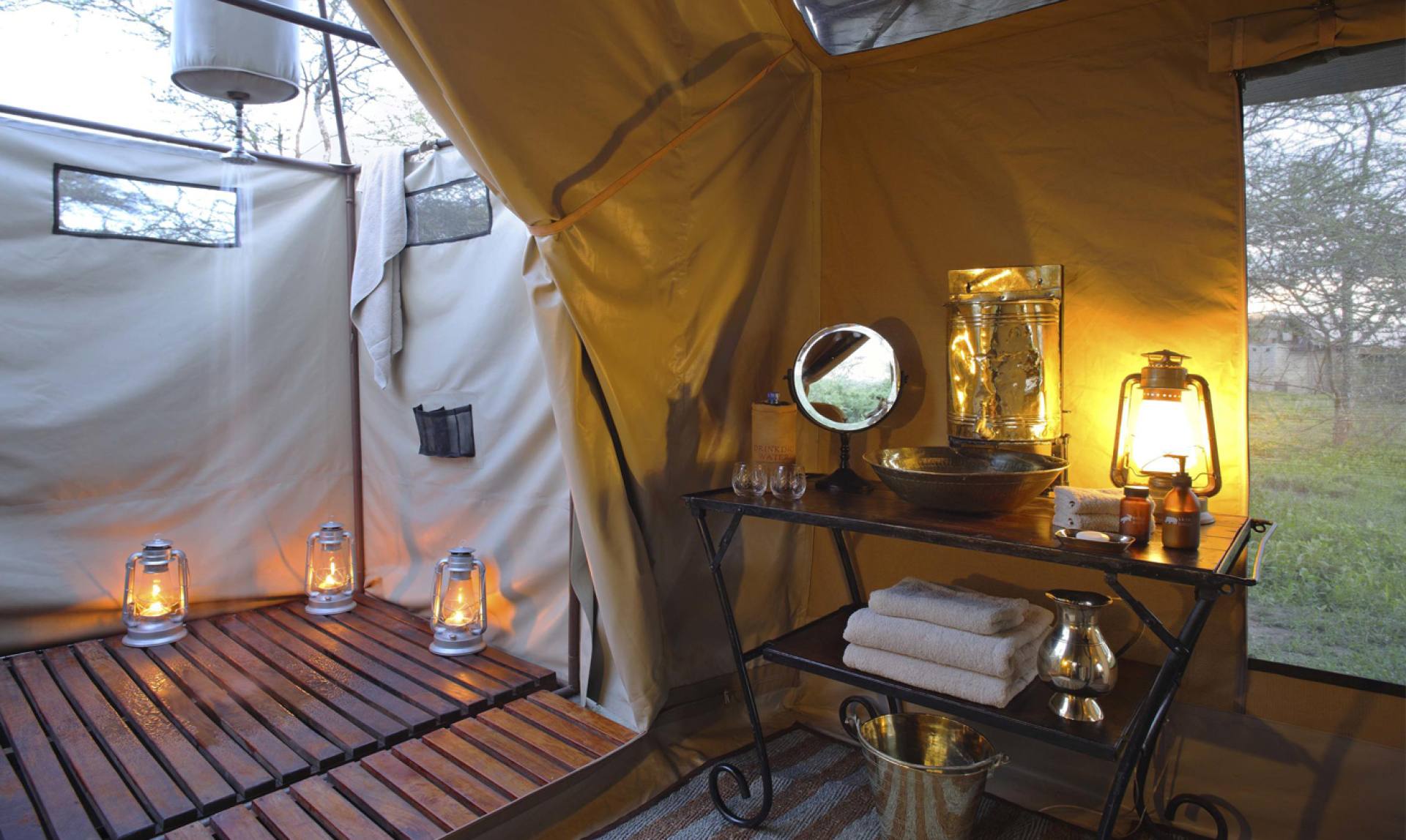 andBeyond Serengeti Under Canvas è un intimo campo tendato mobile che si sposta cinque volte l’anno per cercare di anticipare i movimenti della Grande Migrazione. Con solo nove tende, questo campo offre il massimo del lusso e dell’esclusività in campeggio, con servizio di maggiordomo privato, lampadari, argenteria, cristalli, servizi igienici privati, docce esterne riscaldate e comodi letti con soffici piumoni.