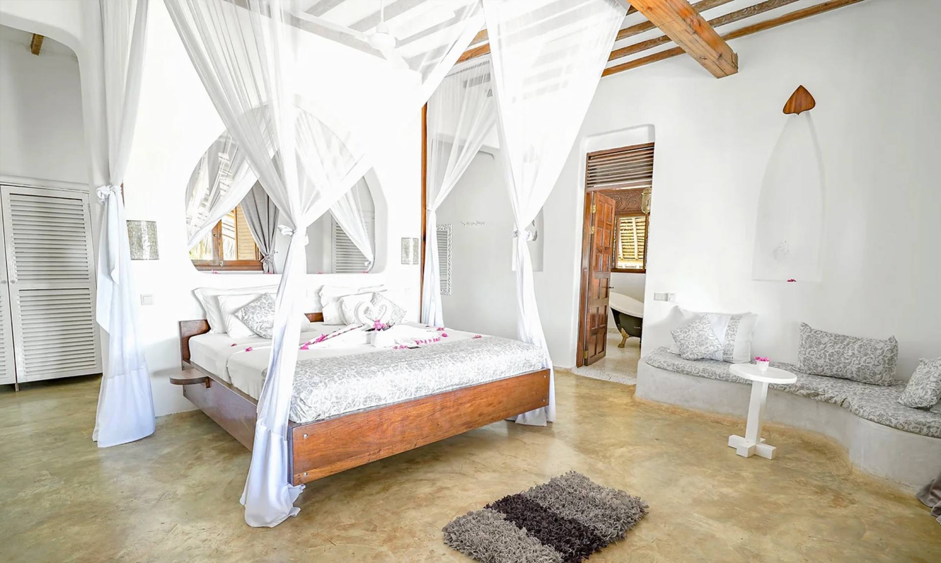 Boutique Hotel Matlai, situato sulla splendida costa sud-orientale di Zanzibar, offre agli ospiti una sistemazione sulla spiaggia davvero unica e straordinaria. Nella lingua kiswahili di Zanzibar Matlai significa il primo vento del mattino presto che soffia nelle vele. Per gli zanzibarini, soprattutto per i pescatori, questo è un momento molto speciale. La struttura è composta da due ville: Asili House e Villa Kidosho. Entrambe le ville sono situate direttamente sulla spiaggia e circondate da una rigogliosa vegetazione fiorita e profumata. Asili House presenta elementi naturali africani e swahili nel suo design, mentre Villa Kidosho è progettata in stile orientale. Il ristorante e il bar offrono un’eccellente cucina di piatti nazionali e internazionali, una varietà di vini, birre ghiacciate, esotici cocktail tropicali e molto altro ancora.