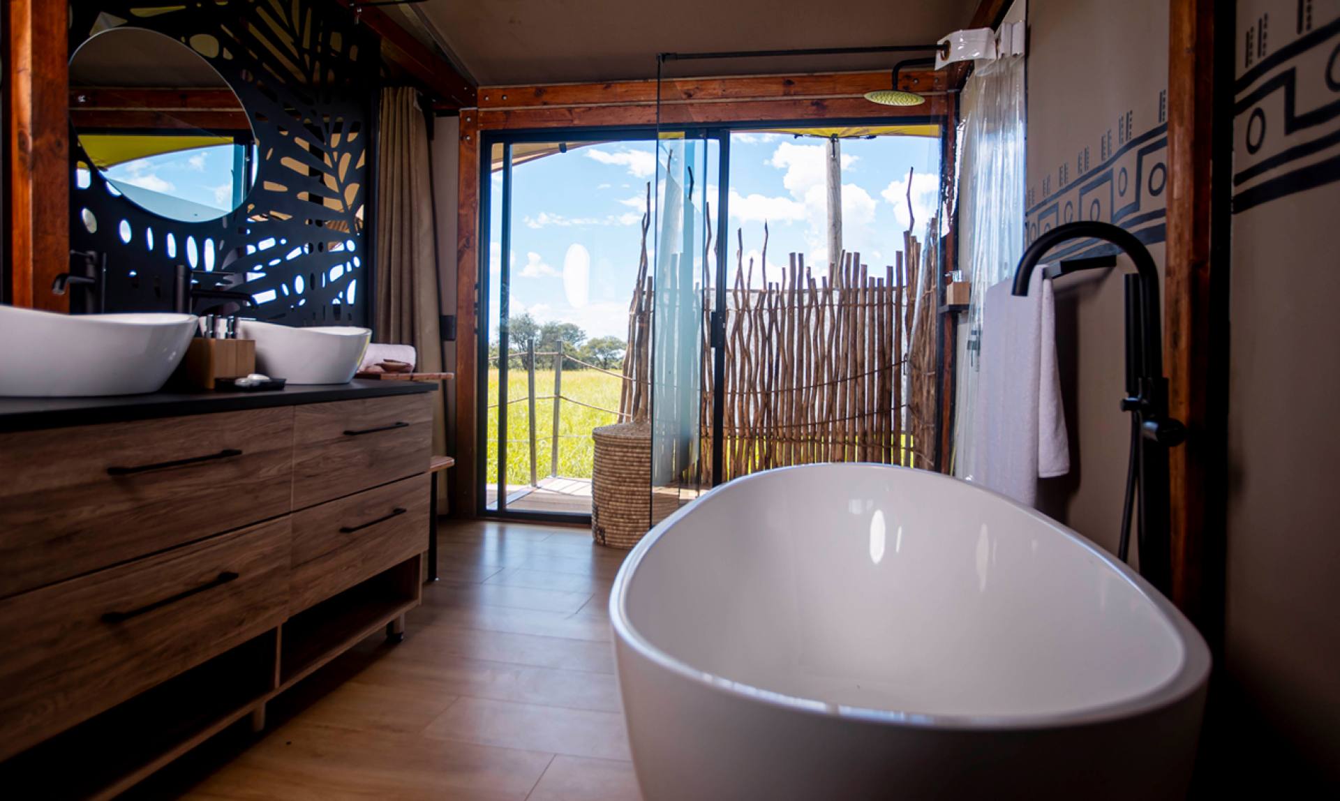 Escarpment Luxury Camp Serengeti è un esclusivo campo permanente, situato nel sito 10 di Fort Ikoma, che offre un accesso impareggiabile alla rotta della Grande Migrazione. Le tende, uniche nel loro genere, hanno una struttura in tela con pareti solide e porte e finestre scorrevoli in vetro, che offrono la sicurezza di un lodge ma l’aspetto di una tenda in tela. Ogni tenda è un santuario del comfort, con biancheria da letto di lusso, arredi eleganti e servizi privati in camera che si fondono perfettamente con l’ambiente naturale circostante.