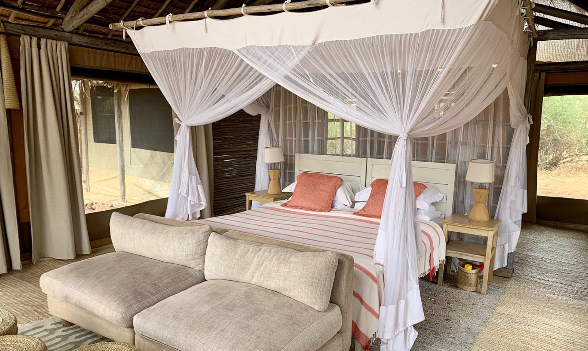 Kuro Tarangire è un campo stagionale elegante e intimo situato nel cuore del Parco Nazionale del Tarangire, a breve distanza dal fiume principale e dalle lussureggianti paludi verdi di Silale e Gursi. Con grandi mandrie di elefanti e bufali, l’osservazione della fauna in questa zona è superba. Il campo dispone di sei ampie e luminose tende splendidamente arredate, ognuna dotata di grandi e comodi letti, veranda, doccia a secchio en-suite e servizi igienici ecologici con sciacquone.