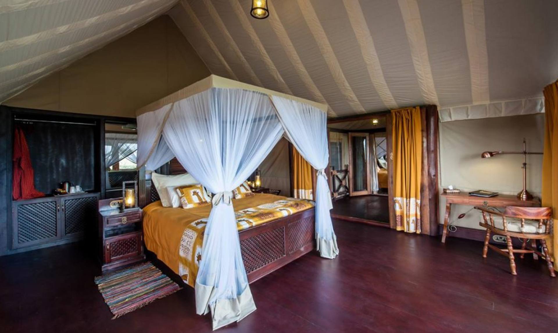Lake Ndutu Luxury Tented Lodge è uno splendido lodge situato a Ndutu, nelle pianure del Serengeti sudorientale all’interno dell’area protetta di Ngorongoro, un luogo privilegiato per i safari e una sosta ideale per il vicino Parco Nazionale del Serengeti. Il lodge dispone di venti lussuose tende per gli ospiti posizionate su palafitte di legno, tutte con pavimento in legno, ampia camera da letto, bagno privato e balcone. Le aree comuni comprendono un ristorante con cucina internazionale, un lounge bar con terrazza panoramica e una piscina dove potersi rilassare dopo un’intensa giornata di safari.