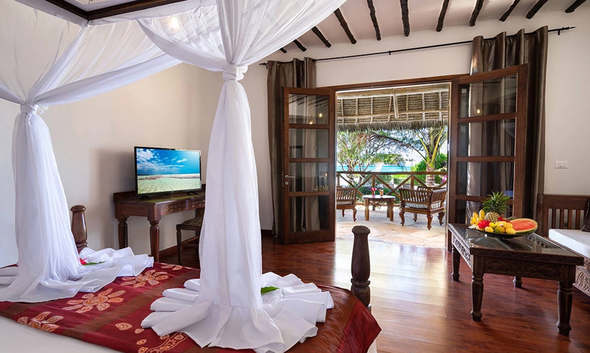 Next Paradise Boutique Resort si trova su una delle più belle spiagge di sabbia bianca di Zanzibar, a soli quarantacinque minuti di auto da Stone Town e a trenta minuti da Nungwi e Kendwa. Questo piccolo albergo, con solo venticinque camere di diverse categorie, è noto per la sua sobria eleganza, l’ottima cucina e soprattutto per la sua atmosfera intima e tranquilla. La sua posizione, inoltre, lo rende il luogo perfetto per organizzare escursioni, nuotare con i delfini, praticare pesca d’altura, kite surf, immersioni e snorkeling nell’atollo di Mnemba.
