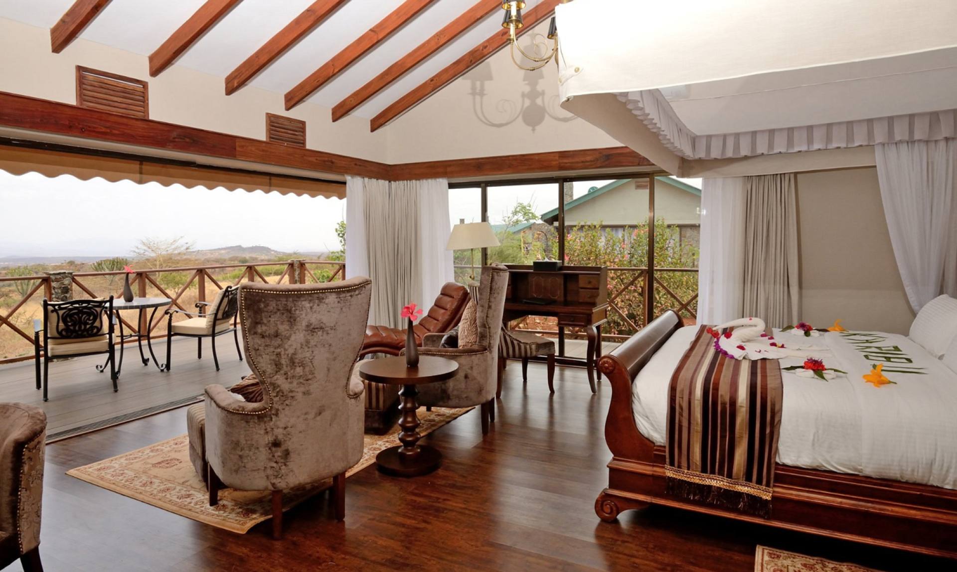 Ngorongoro Oldeani Mountain Lodge è un lodge coloniale a cinque stelle situato su una pittoresca collina con viste spettacolari sul Monte Oldeani e sul bordo del Cratere di Ngorongoro. La proprietà si trova su 40 acri di lussureggianti giardini incontaminati e vegetazione locale con oltre 130 specie di uccelli. Tutte le camere sono arredate con gusto con tutti i comfort che ci si aspetterebbe da un lodge di alto livello. La spettacolare casa principale in pietra è dotata di tutti i lussi, tra cui il salone principale, il grande corridoio centrale, la sala da pranzo, la spa, la boutique, la sala conferenze, la sala multimediale (TV), il caminetto esterno, la piscina a sfioro, la sala da biliardo, l’internet café e la sala per le attività dei bambini.