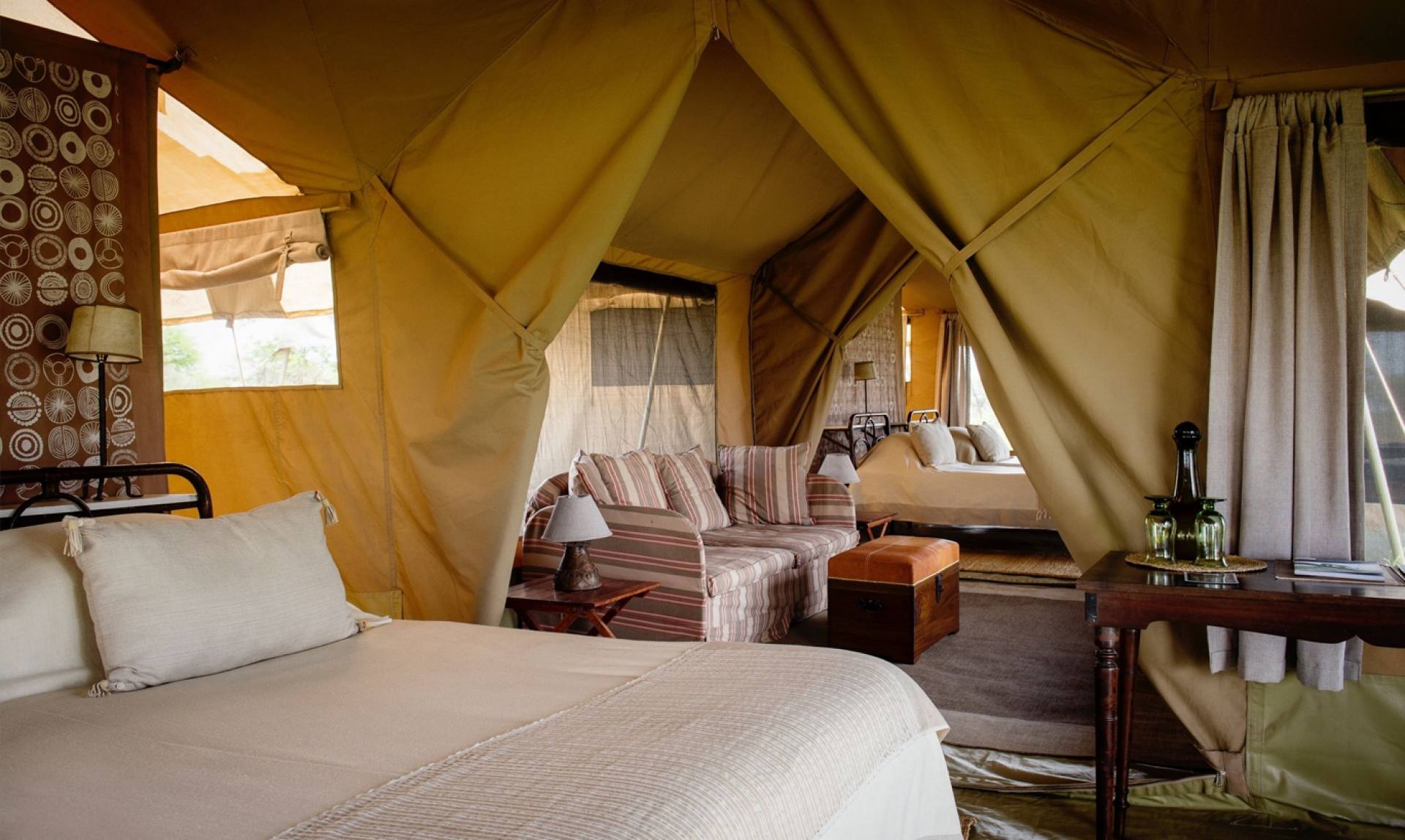 Nomad Serengeti Safari Camp è stato uno dei primi campi a imitare la migrazione stagionale degli gnu, spostandosi diverse volte l’anno per essere nella posizione migliore per vedere le grandi mandrie. Il campo è composto da sei tende in stile Meru, dotate di spaziosa camera da letto e spogliatoio, bagno privato con doccia a secchio in stile safari e veranda dove godersi la vista della natura circostante. Gli spazi comuni comprendono una tenda ristorante e una tenda adibita a biblioteca, con bar e grandi divani dove rilassarsi. Serengeti Safari Camp è gestito da Nomad Tanzania e le loro proprietà incarnano perfettamente l’equilibrio tra la classica avventura safari e i più alti standard di comfort e lusso.