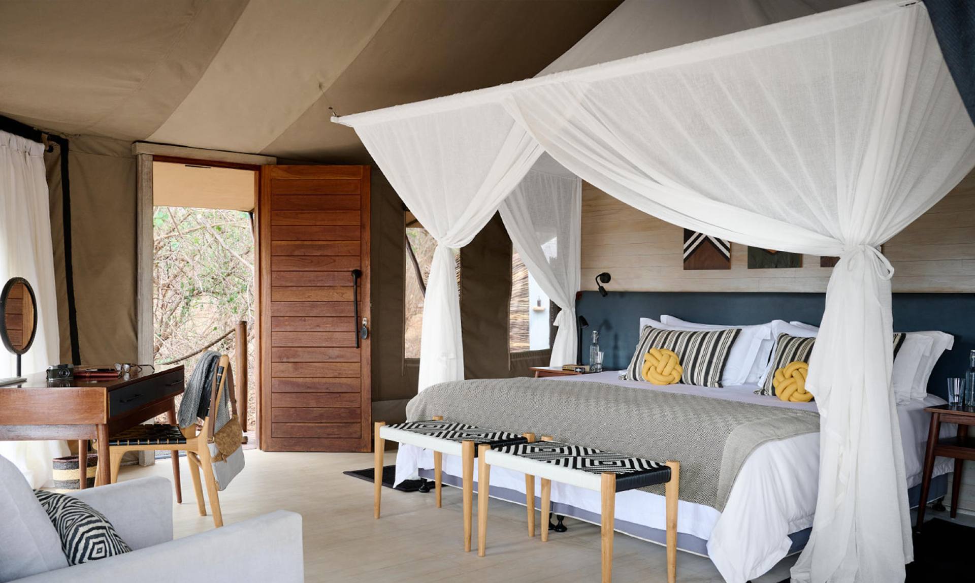 Sanctuary Swala Camp si trova nel cuore del paese Masai e in un angolo remoto del Tarangire, in totale isolamento tra giganteschi alberi di acacia e affacciato sull’immensa savana. Il campo offre un’esperienza di safari molto esclusiva. Il pittoresco paesaggio è pieno di antichi baobab, elefanti in movimento e uccelli in volo. Costruito secondo i più alti standard ecologici, questo campo ha un’impronta di carbonio particolarmente bassa. Le dodici camere a pianta aperta con pavimenti in legno sono state allestite con eleganti interni dai toni neutri, abbinando arredi safari-chic a ricchi tessuti africani. La sala da pranzo, il salotto e la biblioteca, costruiti su palafitte attorno ad antichi baobab, offrono un’impareggiabile visione della natura circostante.