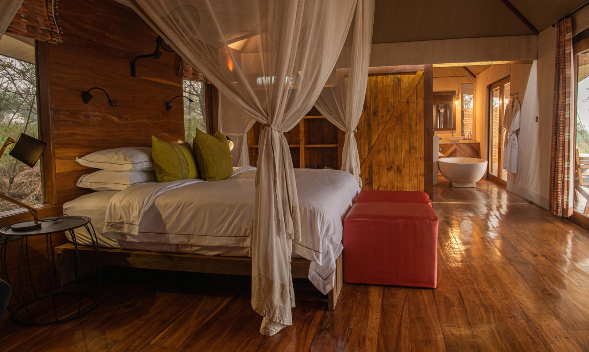 Sayari Camp si trova nel nord del Parco Nazionale del Serengeti, in una posizione privilegiata per assistere al crossing del fiume Mara da parte di migliaia di gnu. Spaziose e luminose, le quindici suite tendate del Sayari hanno pavimenti in mogano e letti king o twin con lenzuola pregiate e cuscini colorati. I bagni in camera sono dotati di servizi igienici, doppio lavandino, doccia e splendida vasca da bagno. Le aree comuni della zona pranzo e della zona lounge si fondono perfettamente con l’esterno: grandi porte scorrevoli in vetro consentono una vista ininterrotta delle pianure ondulate del Serengeti. Incorniciata da formazioni rocciose naturali, la bellissima piscina a sfioro vanta viste impressionanti sul Serengeti ed è il luogo ideale per sfuggire al caldo e trascorrere un pomeriggio pigro, ammirando le pianure brulicanti di fauna selvatica.