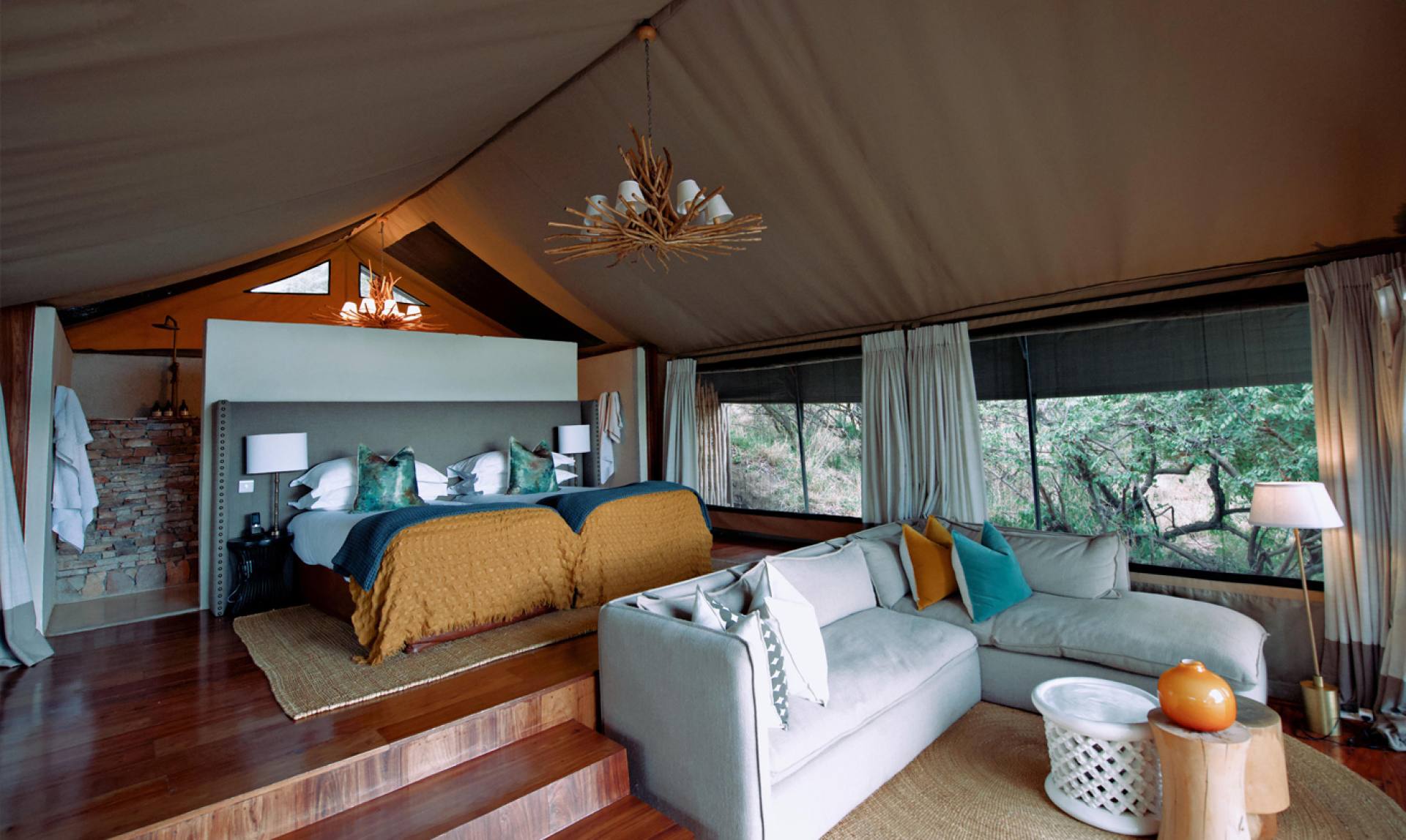 TAASA Lodge, situato al confine settentrionale del Serengeti in Tanzania, si trova su un crinale all’interno di un’area di gestione della fauna selvatica, lontano dalle folle di turisti. Progettato con cura e decorato con gusto, il lodge principale è rifinito con una combinazione di legni pregiati e grandi finestre panoramiche. L’area comune offre un’ampia sala da pranzo, un salone con sontuosi divani e caminetto, un ampio patio esterno con braciere e sedie a sdraio e una spettacolare piscina. Ogni lussuosa e spaziosa tenda con bagno privato fonde perfettamente comfort moderni con accenti unicamente africani.