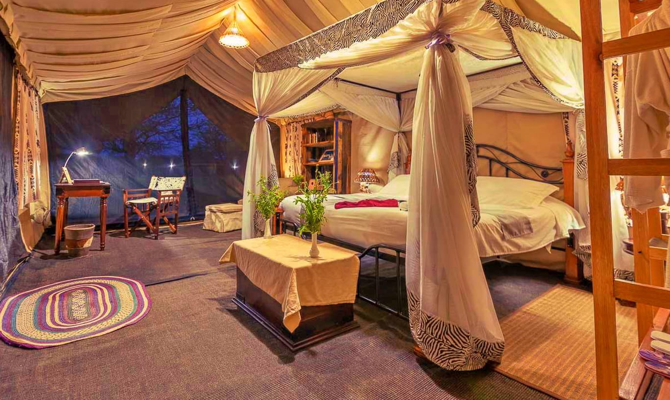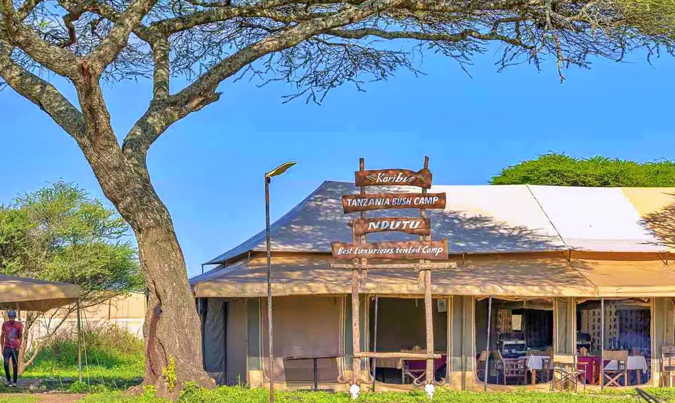 Tanzania Bush Ndutu Mobile Camp è un campo tendato stagionale situato da dicembre a marzo nella remota regione di Ndutu all’interno dell’Area di Conservazione di Ngorongoro. La sua posizione privilegiata offre l’opportunità di assistere alla Grande Migrazione degli gnu durante la stagione dei parti. Il campo è composto da dieci spaziose e confortevoli tende con bagno privato dotato di WC a sciacquone, doccia calda e lavandino. La tenda centrale comune comprende un salone arredato con comodi divani e sedie, un bar ben fornito e un ristorante che propone un mix di cucina continentale e locale.
