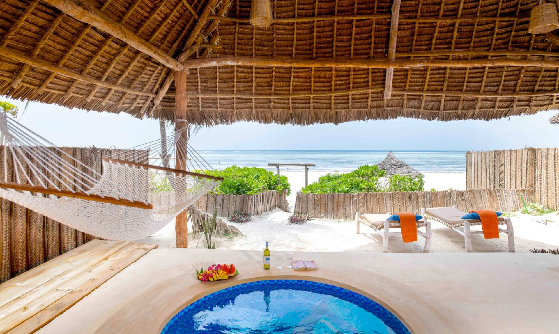 Zanzibar Sunrise at Bandas è un bellissimo, remoto ed ecologico hotel situato sull’incontaminata e nascosta costa nord-orientale dell’isola di Zanzibar. Gli spaziosi bungalow sulla spiaggia con tetto di paglia e con la parte anteriore aperta garantiscono un’eccellente climatizzazione naturale e sono stati costruiti utilizzando solo materiali tradizionali ed ecologici. Il ristorante, con la sua fusione di cucina internazionale e locale, propone un menù à la carte con opzioni vegetariane ed è diventato rapidamente una destinazione culinaria a Matemwe. Per i clienti più esigenti l’hotel propone inoltre una lussuosa villa di 220 metri quadrati a due piani con piscina privata e spettacolare vista sull’oceano.